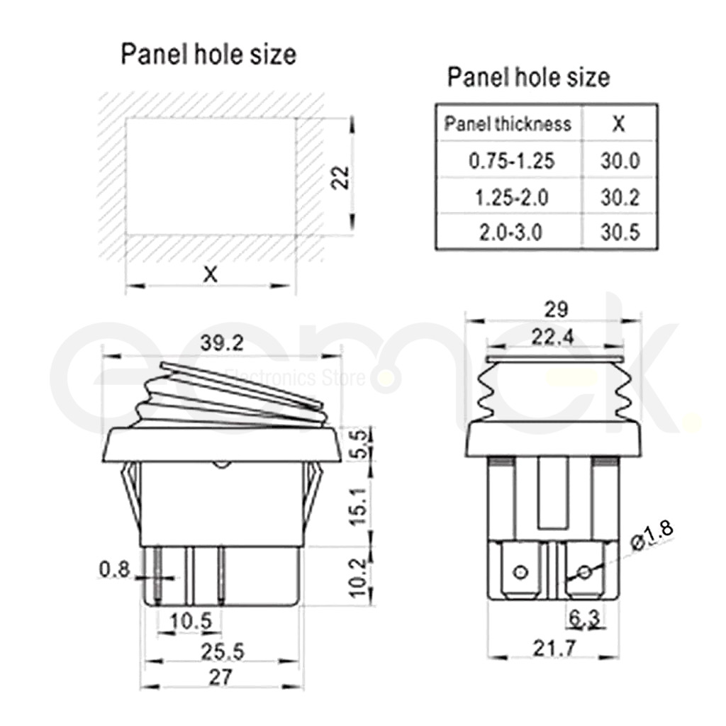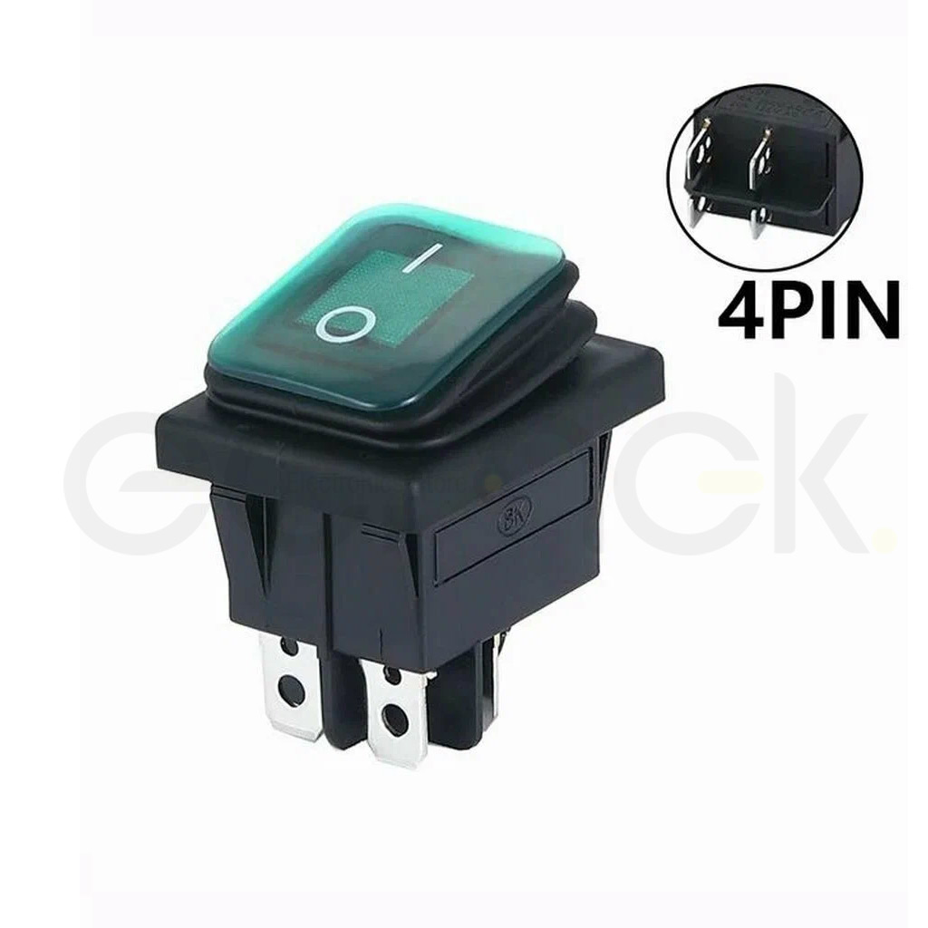 Waterproof Rocker switch 30x25mm on/off 4 pin Green 15A 250VAC