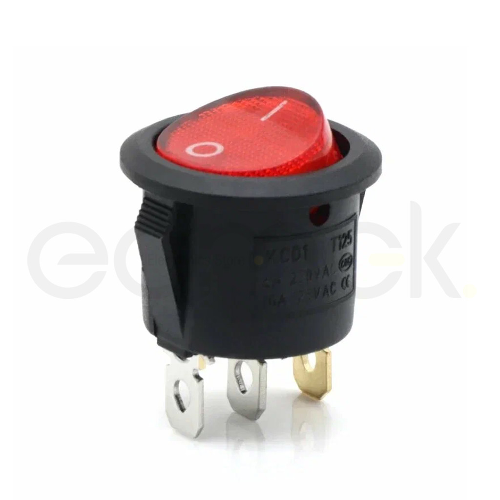 Rocker switch KCD1 6A 250VAC 3 Pin Red light D:23mm