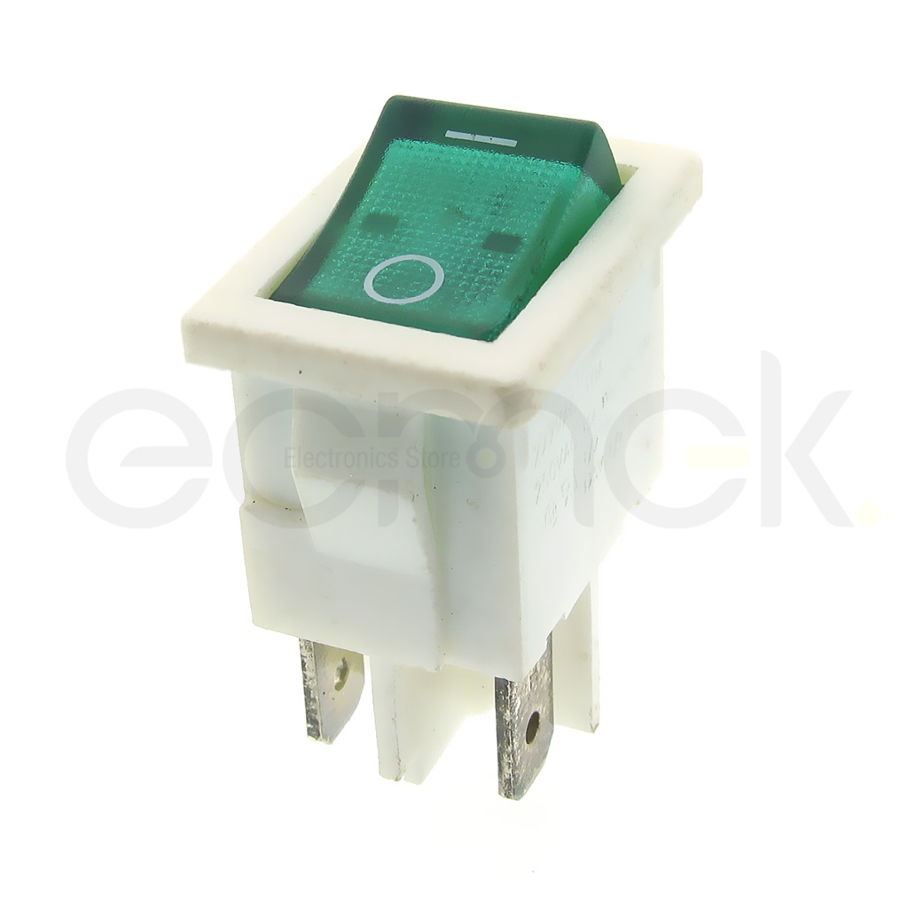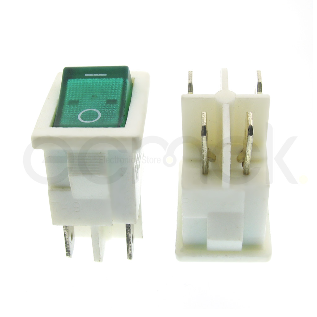 Rocker switch 4pin 15A 250VAC White & green Light 15x20mm