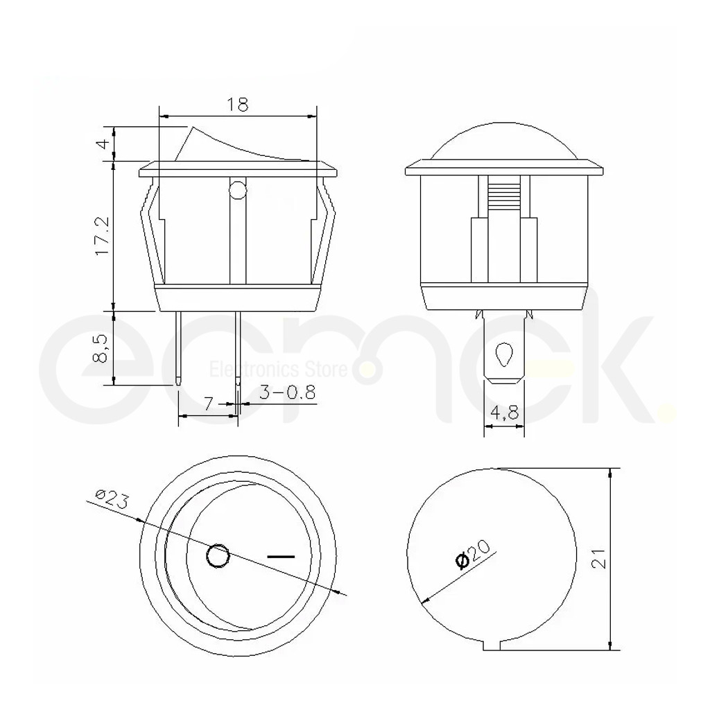 Rocker switch black KCD1 2Pin OD:23mm ID::23mm no light