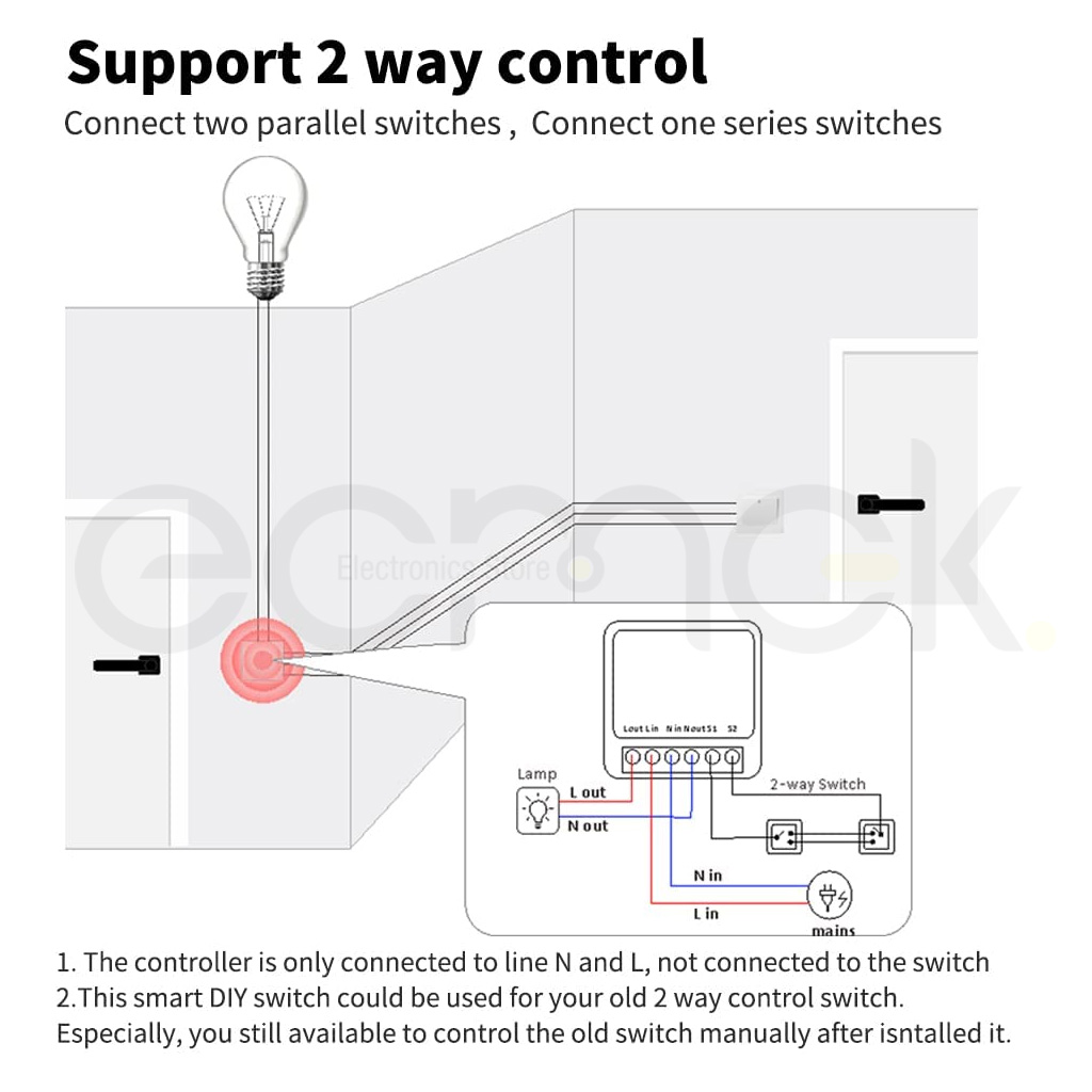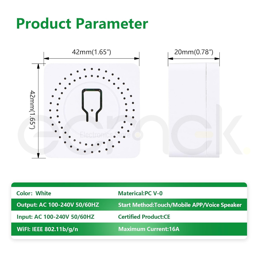 Smart WiFi Switch Relay 100-240V 10A 1 CH with Ewilink