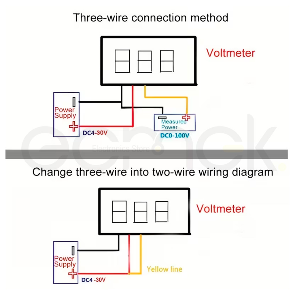 Mini Digital Voltmeter DC 0-100V – Three-Line LED Display, Reverse Polarity Protection