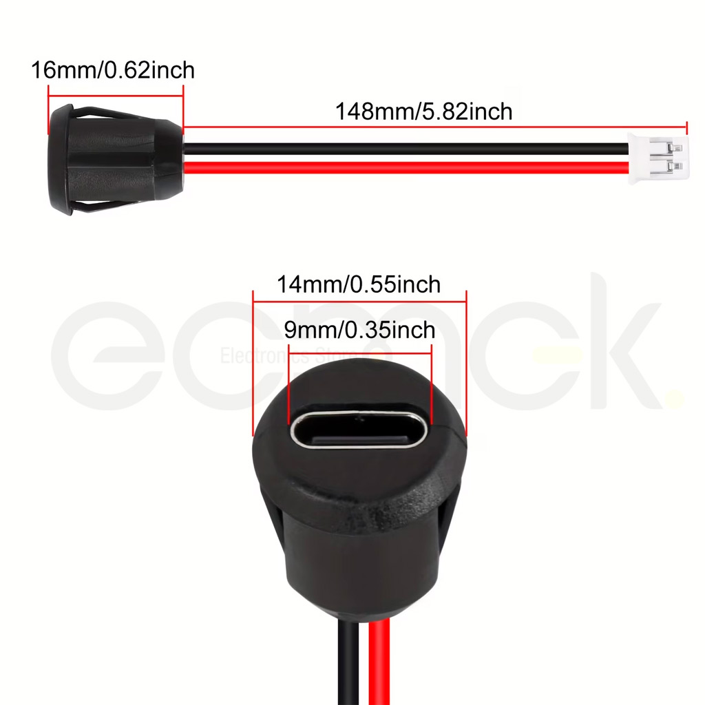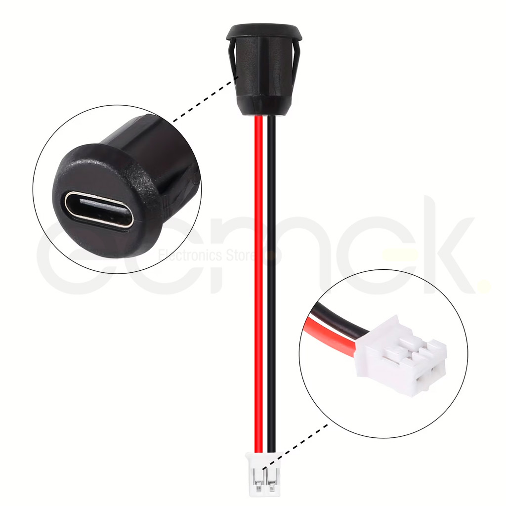 Female Black Round Type-C Socket Connector For Enclosure 2 Pin Copper Alloy D:14